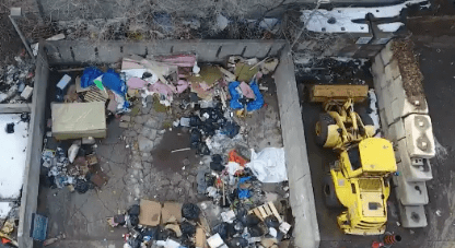 The City admits that multiple people have had all of their possessions destroyed after being told that they could keep their belongings in the park while they settle into a shelter-hotel.8 Unhoused people’s property includes survival supplies like tents, sleeping bags, clothing, safety equipment, food, and heat sources, which are necessary for the health and safety, and possibly even survival, of people living outside. City staff claim that current City policy is that they will store and catalogue people’s belongings so that they can be retrieved at a later date;9 but for those things that are not destroyed or disposed of, the “cataloging process” does not involve any indication of who owns the property and images of the “stored belongings” appear to be piles of property cleared from encampments that have been dumped in an outdoor City parking lot(see Image 4 below).10